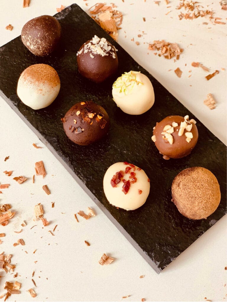 Elaboración y decoración de fresas con chocolate, elaboración de trufas de chocolate, elaboración de diferentes tipos de ganashe.