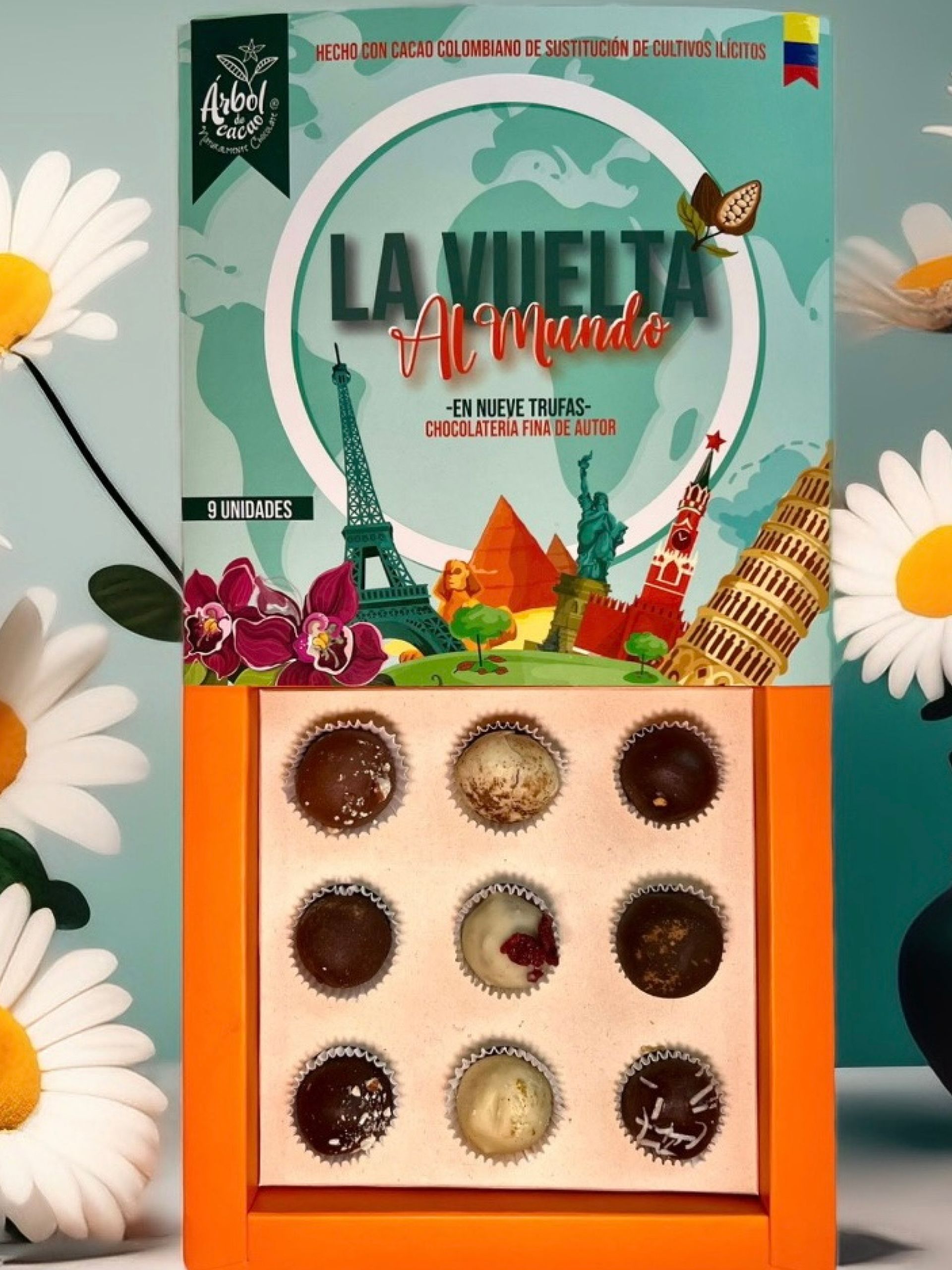 Descubre nuestra increíble colección de trufas “La Vuelta al Mundo en 9 Trufas”. Elaboradas con el cacao más exquisito de Colombia, cada trufa te transporta en un emocionante viaje a destinos exóticos:
